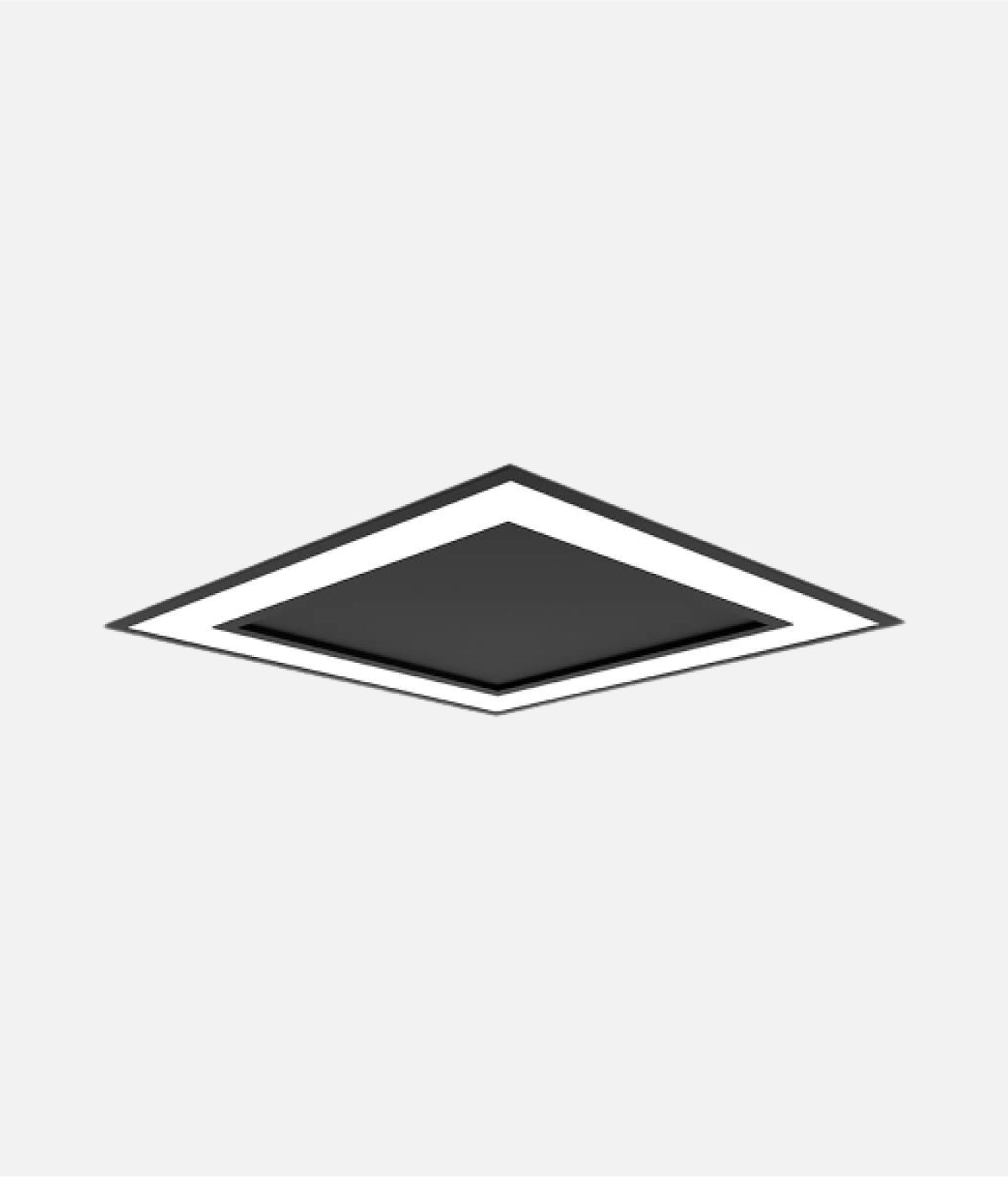 Iluminação projetada para destacar os produtos nas prateleiras mesclando com pontos indiretos para iluminação do espaço.